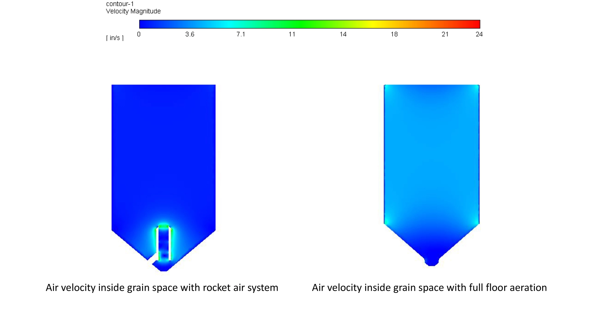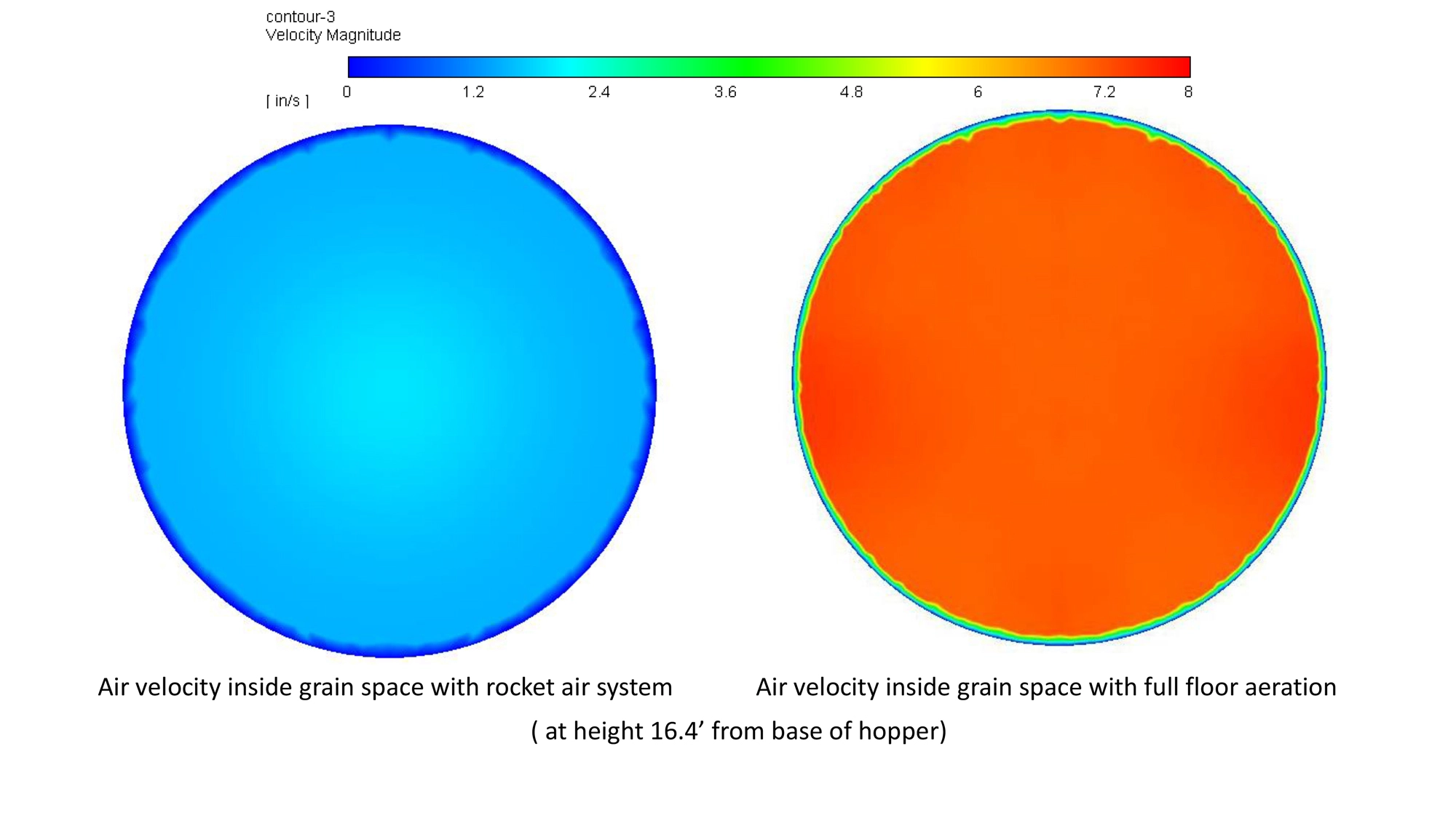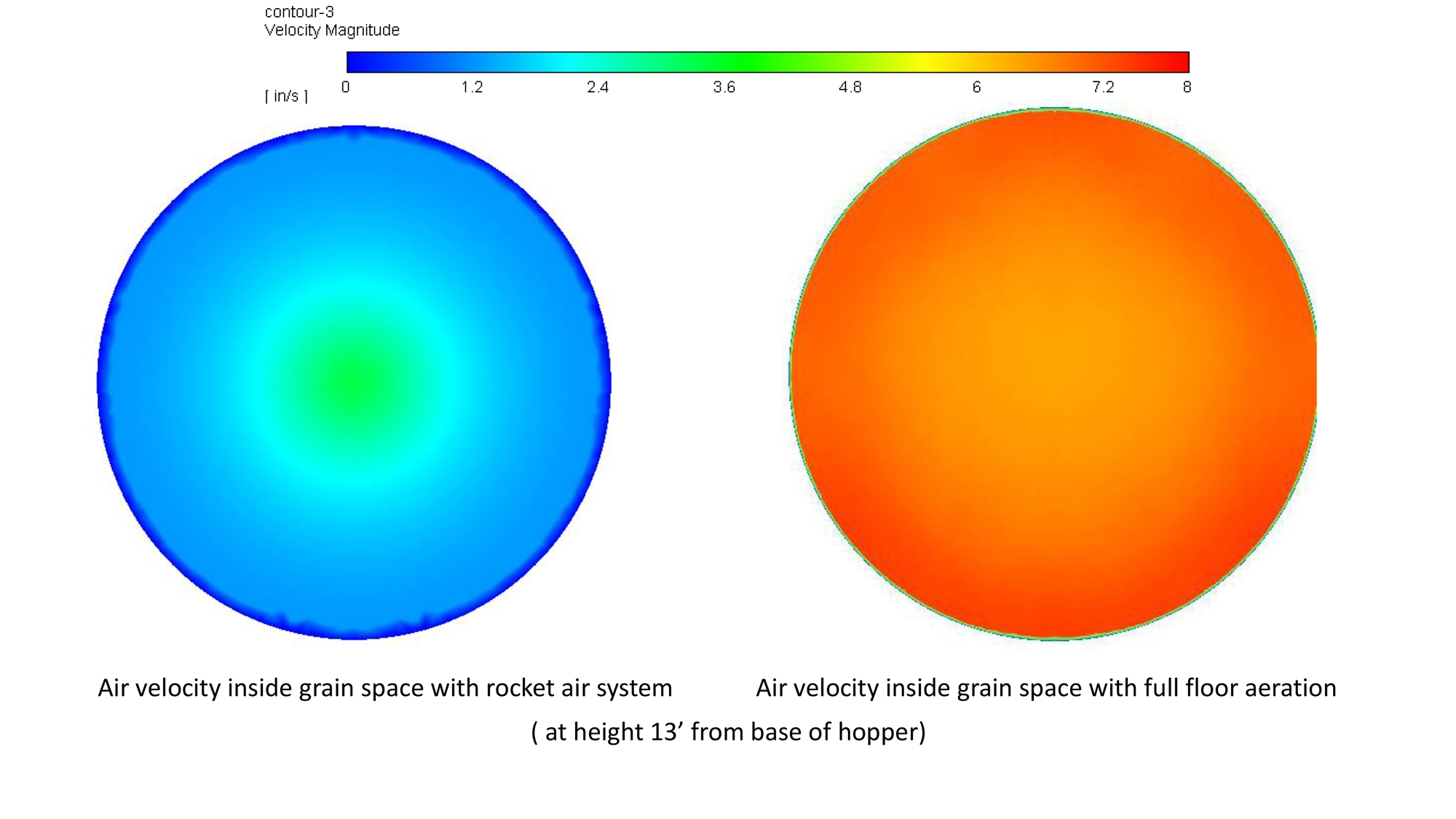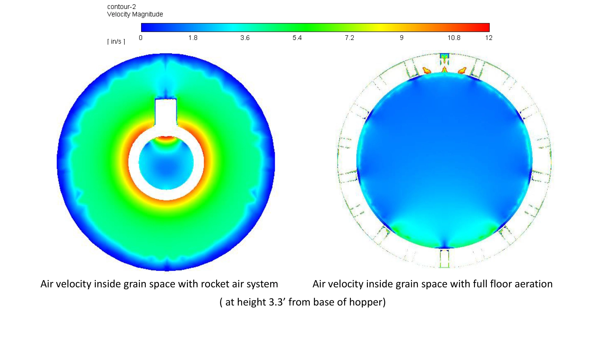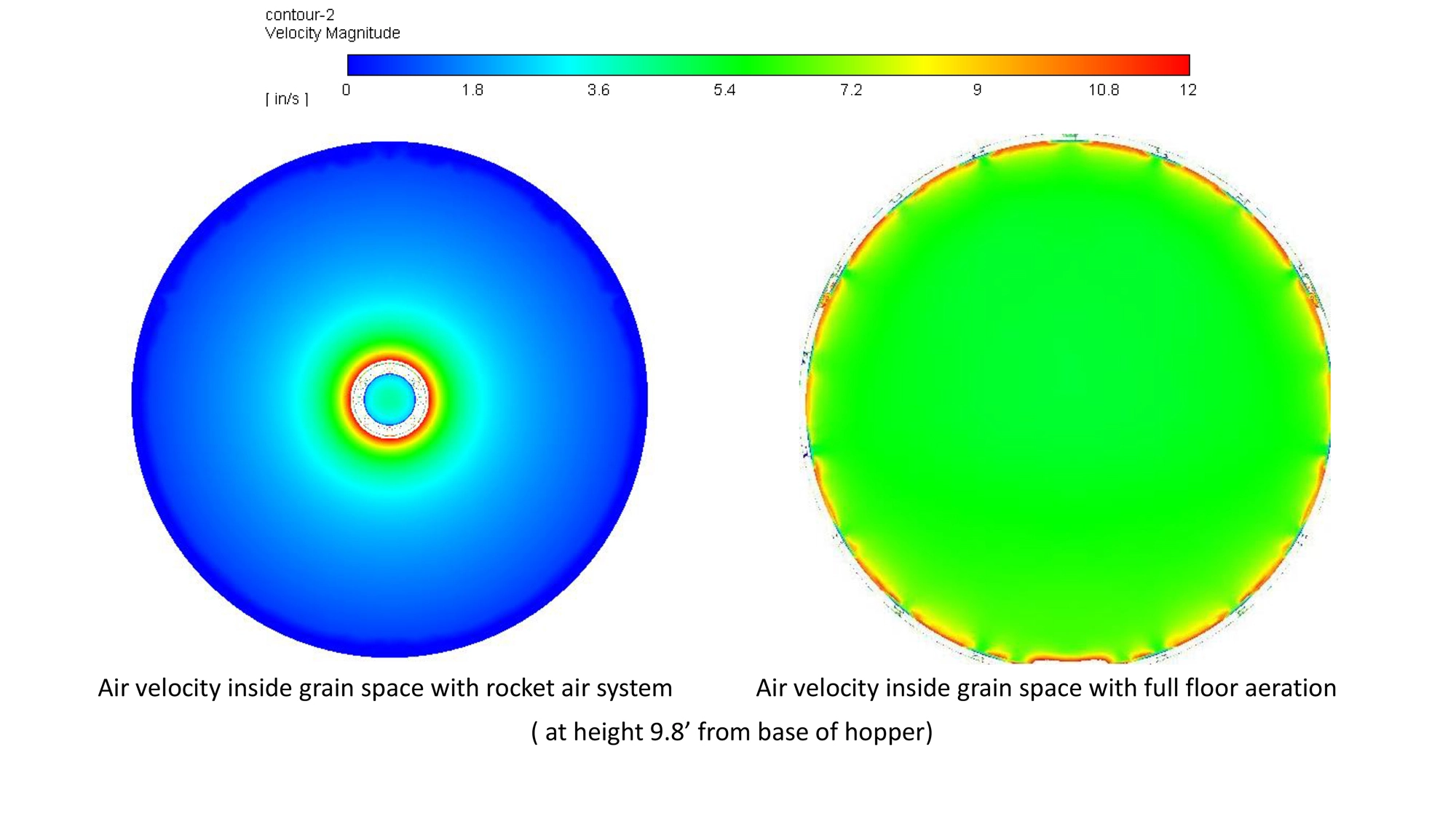 THIS SYSTEM INCLUDES A SECOND, PERFORATED FLOOR INSIDE THE HOPPER CONE. THE AIR IS THEN EQUALLY DISTRIBUTED BETWEEN THE HOPPER CONE AND PUSHED THROUGH THE PERFORATED FLOOR. AS A RESULT, GRAIN BINS DO NOT NEED TO BE FILLED TO THE TOP FOR OUR AERATION SYSTEM TO WORK. YOUR GRAIN WILL ALWAYS RECEIVE EVEN AIRFLOW. OUR AIRFLOW CHARTS ARE AVAILABLE ON OUR WEBSITE.