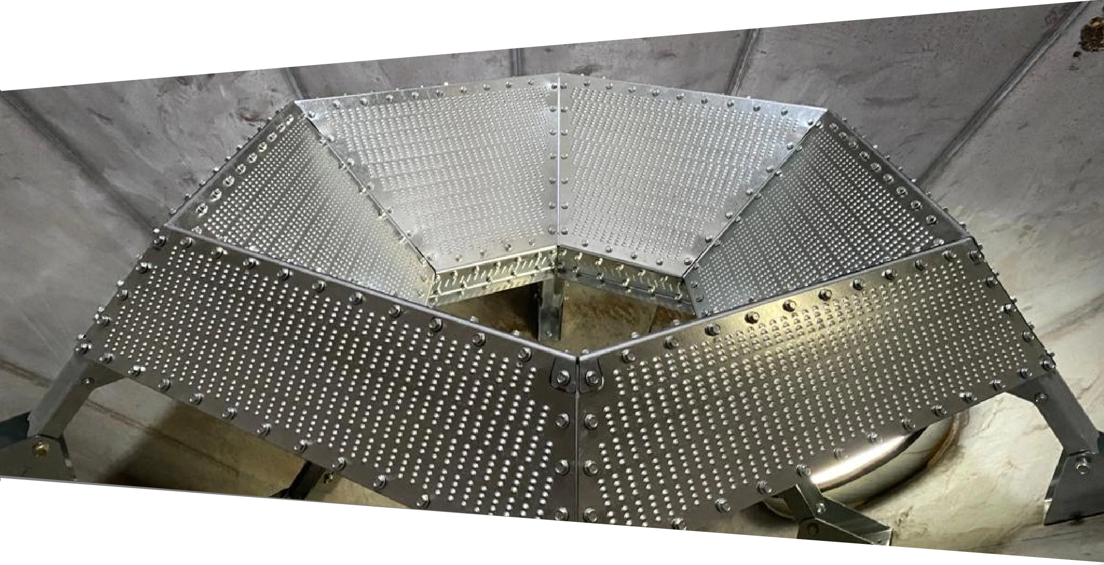 THE NORBIN FULL-FLOOR HOPPER AERATION SYSTEM USES A SPECIAL PERFORATION DESIGN THAT ALLOWS FOR EXCELLENT AIRFLOW AND WORKS WITH ALL SIZES OF GRAIN AND SEEDS. ALL GRAIN INSIDE YOUR BIN IS BEING AERATED BY THE WHOLE HOPPER CONE. THIS IS POSSIBLE WITH OUR NEW PATENT-PENDING AERATION SYSTEM.