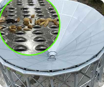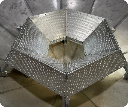WITH OUR 40-DEGREE HOPPER CONE, THE AERATION SYSTEM IS DESIGNED SO THAT NO GRAIN REMAINS IN YOUR BIN. THIS ALSO ALLOWS THE DUST IN THE AIR CAVITY TO SPILL OUT WHEN YOUR BIN IS EMPTIED.